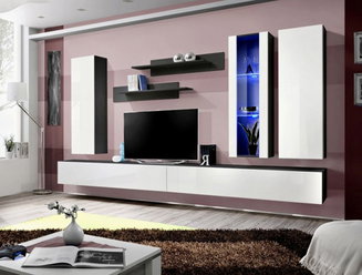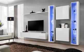 Obývacia stena Regine 20 PGS RB (perlovo sivá + sivý dub) (s osvetlením)