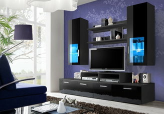 Obývacia stena Marlin 23 ZZ MI (s osvetlením) (čierna + lesk čierny)