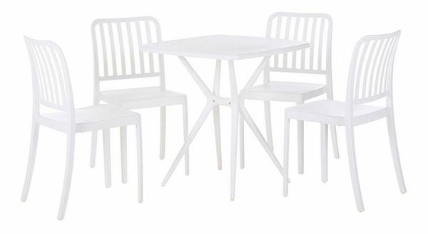 Pripravte sa slnečné dni strávené v záhrade alebo na balkóne s touto súpravou stola a stoličiek. Všetky časti sú vyrobené z odolného plastu, takže sa dajú ľahko presúvať a neublíži im ani jarný dážď. Štvorcový stôl ponúka dostatok priestoru na vychutnanie si šálky kávy alebo obeda vonku a keď sa počasie pokazí, súpravu je možné použiť aj vo vnútri. Vďaka bielej farbe a minimalistickému dizajnu hravo zapadne do akéhokoľvek moderného priestoru.