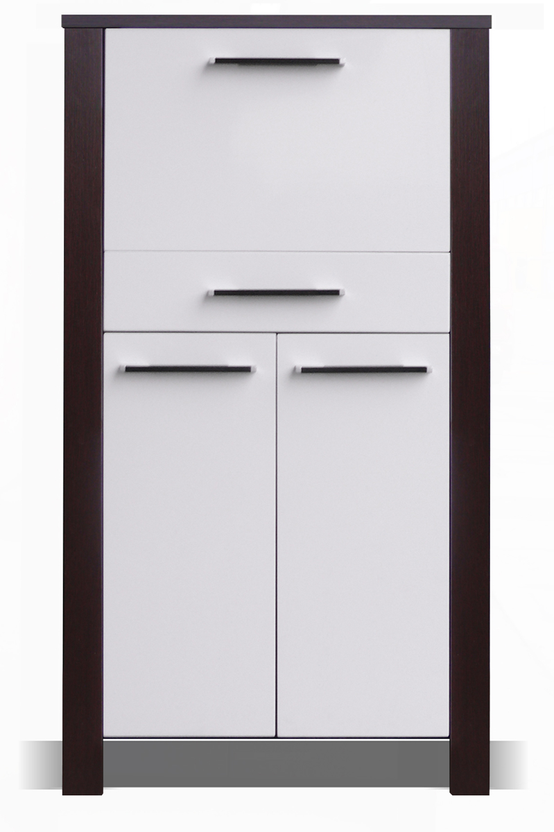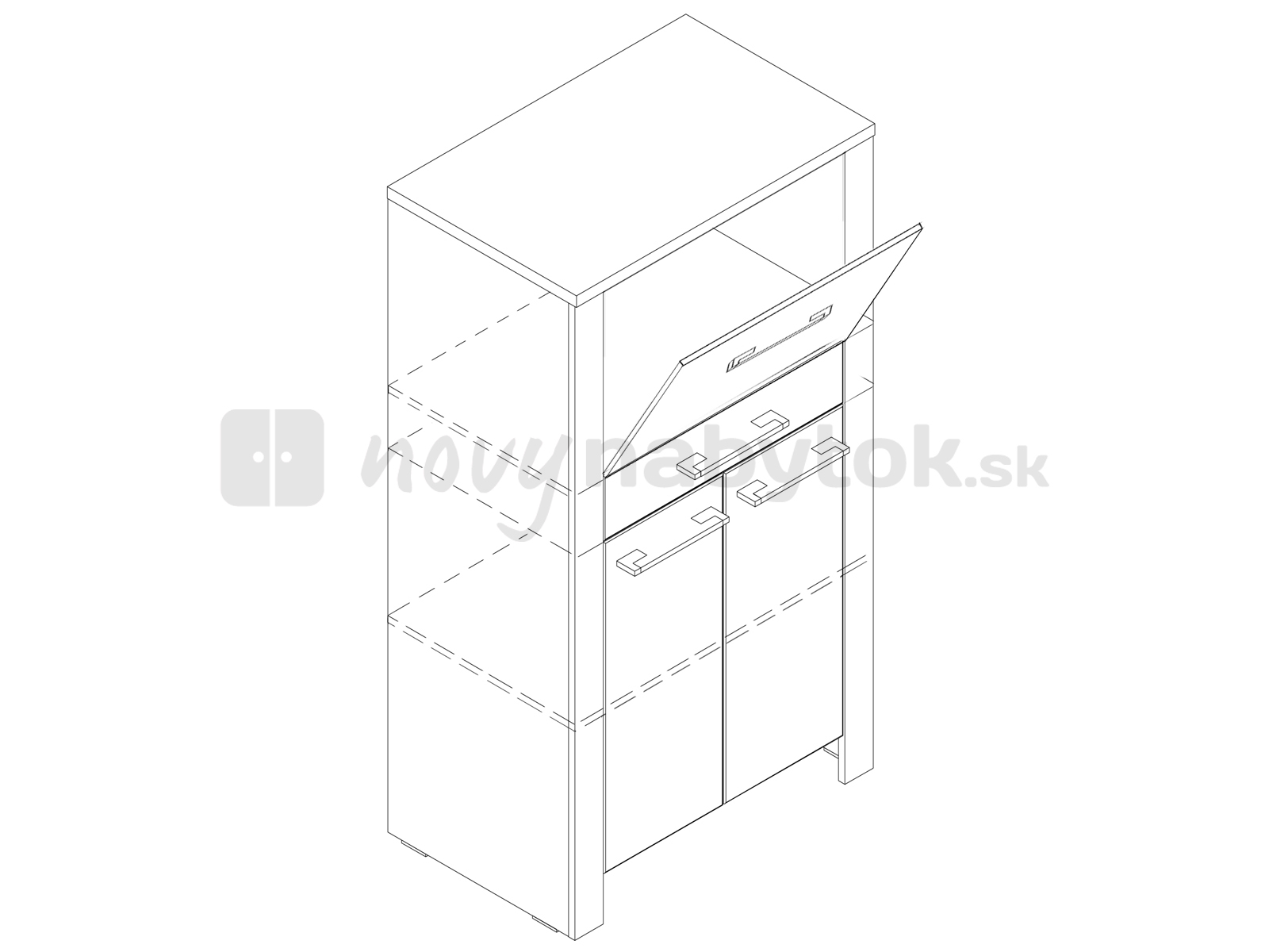 Praktická kombinovaná komoda, ktorá je rozdelná na tri úložné časti. Dolná časť je uzavretá dvomi dvierkami, horná má vyklápacie dvierka s priestorom pre bar. Oddelené sú od seba zásuvkou.