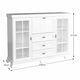 Barová skrinka Kraz KK6 je elegantná masívna komoda s presklenými dvierkami, tromi zásuvkami a výklopnou časťou. V rustikálnom štýle vystihujú ozdobné vyrezávané nohy a lišty. Materiál korpusu a vrchnej dosky je laminovaná DTD a dolnej dosky laminovaná MDF, zásuvky a dvierka majú kovové úchyty. Skrinka bude skvelým doplnkom do obývačky, jedálne alebo pracovne. Rozmery sú 158x46x117 cm a spodný priestor od podlahy je 10,5 cm. Sektorový nábytok Kraz je ideálny pre tých, ktorí hľadajú rustikálny štýl výzdoby svojho interiéru.