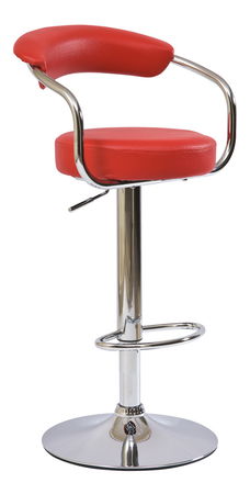 Barová stolička C-231 pôsobí veľmi elegantne a zároveň moderne. Sedák a operadlo sú potiahnuté koženkou v červenom farebnom prevedení, kovová konštrukcia je vo farbe chrómu.
