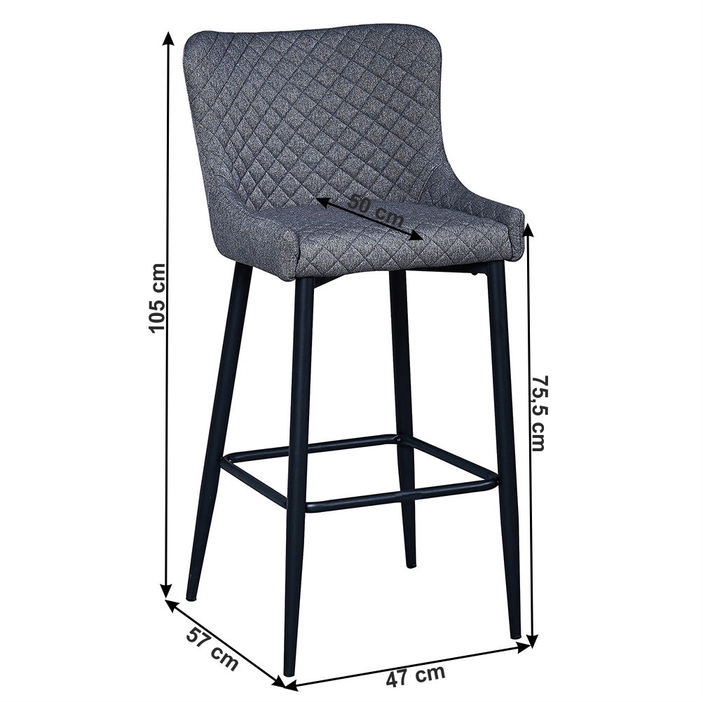 Zhmotnená elegancia, ktorá prinesie pohodlie do vašej jedálne? Barová stolička Cidaria bola stvorená, aby spríjemnila vaše stolovanie. Nádherne sa bude vynímať pri barovom stole či pulte. Sedacia časť je čalúnená látkou v sivom prevedení. Stabilitu zabezpečujú kvalitné čierne kovové nohy. Sedadlo aj operadlo stoličky sú z prednej strany prešívané, čo má za následok v kombinácii s použitou látkou veľmi pekný a moderný konečný efekt. Nohy stoličky spevňuje podpera na nohy. Ranná káva pri bare či večerné posedenie pri víne? So stoličkou Cidaria žiadny problém.