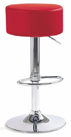 Moderná barová stolička nájde svoje uplatnenie ako v domácnosti tak aj v reštaurácii alebo bare. Okrúhly sedák je pohodlný a potiahnutý koženkou červenej farby. Stabilná kovová konštrukcia je vo farbe chrómu. Kovová obruč Vám umožní opretie si nôh pre väčšie pohodlie pri sedení. Výška je nastaviteľná v rozmedzí 63-82 cm.
