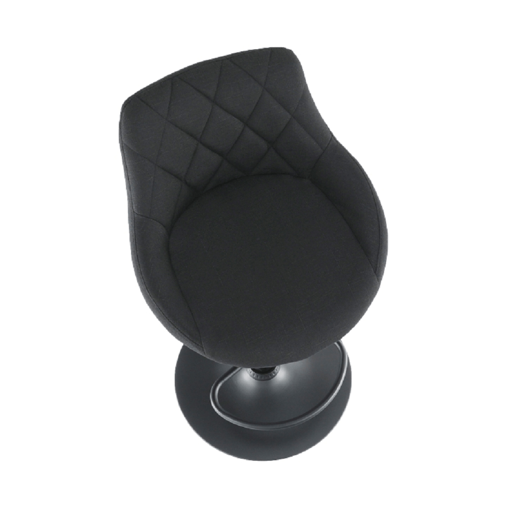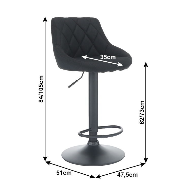 Barová stolička Teken je čierna stolička s nastaviteľnou výškou, vhodná pre barové pulty alebo kuchynskej linky. Je vyrobená z látka + kov materiálu a má nosnosť až 100 kg. Výška sedu sa dá nastaviť od 62 do 73 cm. Textilná časť stoličky má odolnosť až 65 000 oderov podľa testu Martindale. Rozmery stoličky sú 47,5x51x84-105 cm a hĺbka sedu je 35 cm. Táto stolička je ideálna pre tých, ktorí hľadajú moderný vzhľad a pohodlné sedenie.