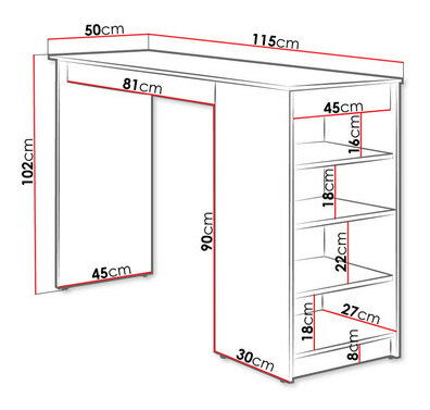 ZobraziťHľadáte netradičné riešenia pre vašu kuchyňu? Nezvyčajná možnosť pre tých, ktorí radi experimentujú. Prekvapte svojich hostí našou ponukou.Stôl je vyrobený z laminovanej dosky. Ide o neskladaciu verziu s výškou 102 cm. Maximálna nosnosť je 30 kg. Tento model je barový stolík s policami, ktorý poskytuje ďalší priestor pre dekorácie alebo drobné kuchynské doplnky.Ako doplnok k celku vás môže zlákať kúpa barových stoličiek, ktoré s týmto kusom nábytku dokonale ladia.