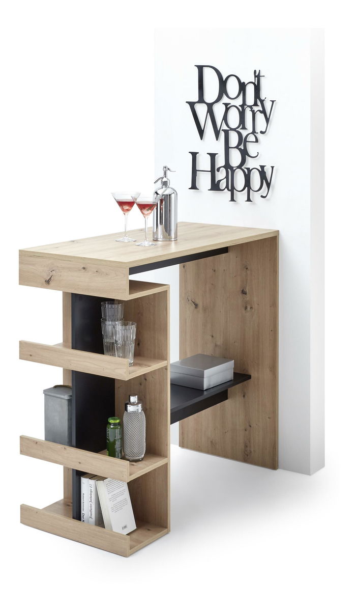 Hľadáte perfektný barový stolík ktorý Vám navyše poskytne aj extra odkladné miesto? Práve ste ho našli! Barový stolík Strega vo farebnom prevedení dub artisan + čierna vytvorí vo Vašej kuchyni či jedálni kútik na oddych a relax, miesto kde si môžete dať drink či miešaný nápoj a nachvíľu sa len tak porozprávať s vašou drahou polovičkou, kamarátom či rodinou. Odkladné police Vám prídu vhod pri uskladnení či vystavení vašich predmetov alebo dekorácií a stolík je taktiež možné pripevniť aj ku stene pomocou skrutiek pre zvýšenú stabilitu. Už viac nehľadajte, barový stolík Strega je tu pre Vás!