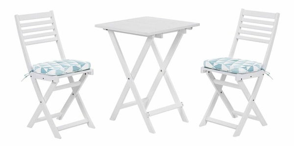 Bistro sada FIJI (masív) (biela) (s modrými vankúšmi)