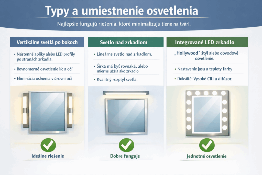 - Zrkadlo a osvetlenie: kľúč k pohodlnému líčeniu