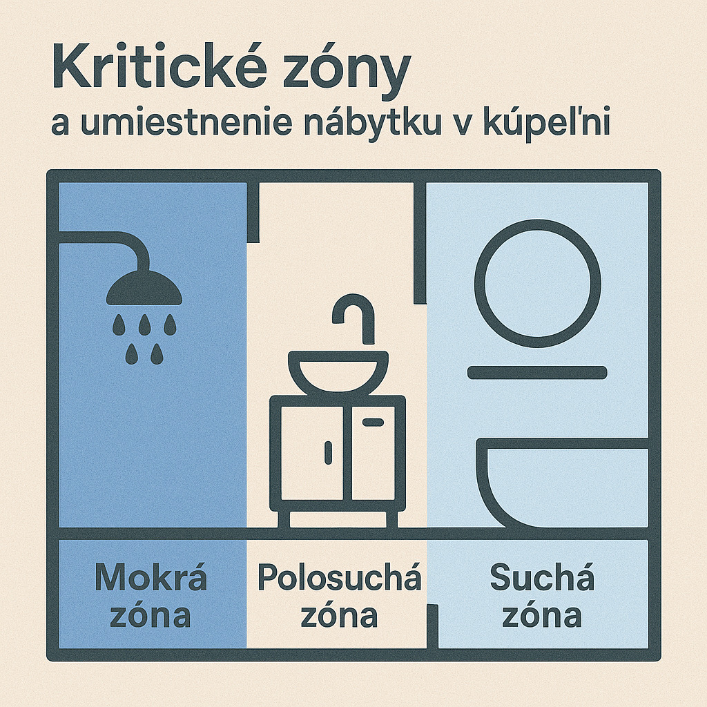 Umiestnenie nábytku: Ešte pred kúpou zohľadnite, kam nábytok v kúpeľni príde. Ak viete, že skrinka bude hneď vedľa sprchy a môže byť ošpliechaná, siahnite po materiáloch s najvyššou odolnosťou (HPL laminát, kompaktná doska, plast). Naopak, do suchšej časti kúpeľne (ďalej od vane) môžete bez obáv dať aj DTD/MDF nábytok s fóliou. V spodných zónach kúpeľne (pri podlahe) preferujte nábytok na nožičkách alebo závesný – zabránite tak kontaktu s mlákami pri vytopení a umožníte cirkuláciu vzduchu pod nábytkom.