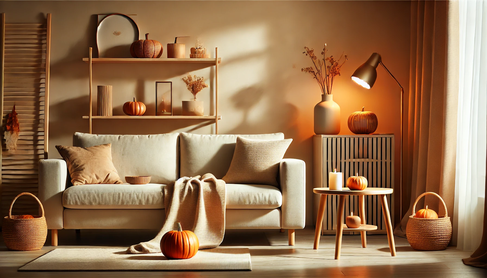 - Obmena dekorácií podľa ročných období – Jesenné dekorácie, ako sú tekvice, vence a prírodné prvky, môžu pridať útulnú a hrejivú atmosféru. Nezabudnite ani na voňavé sviečky a kahance.