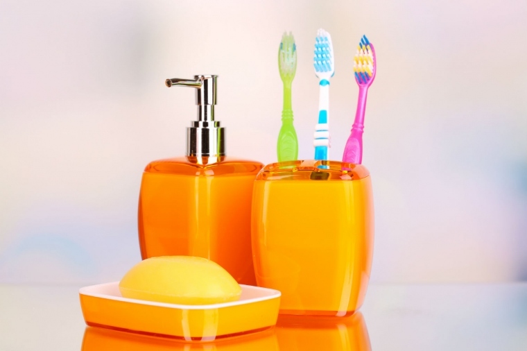Kefky uložte do držiaka, prípadne do nejakého pekného pohára. Držiak na kefku môžete vytvoriť napríklad aj z plastového dinosaura. Stačí do jeho tela vyvŕtať otvory správnej veľkosti. Počítajte však s tým, že zaberie pomerne dosť miesta na umývadle. Ak máte malé umývadlo, voľte radšej závesný držiak na kefky a rovnako tak aj na mydlo (či už používate tuhé alebo tekuté). Držiak kefky aj dávkovač na mydlo by mali mať rovnaký dizajn.