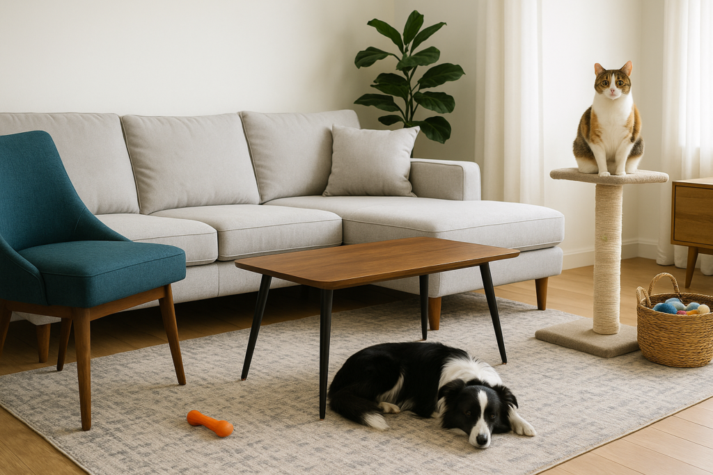 - Pravidlo 80/20: 80 % ochrana nábytku, 20 % zábavy pre zviera (hračky, pelechy).