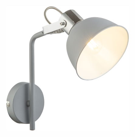 Nástenné svietidlo kovové šedé, chrómové, s priehľadným káblom 1,5 m, vypínač, Š x V: 130x260, AL: 255, bez 1xE14 25W 230V
