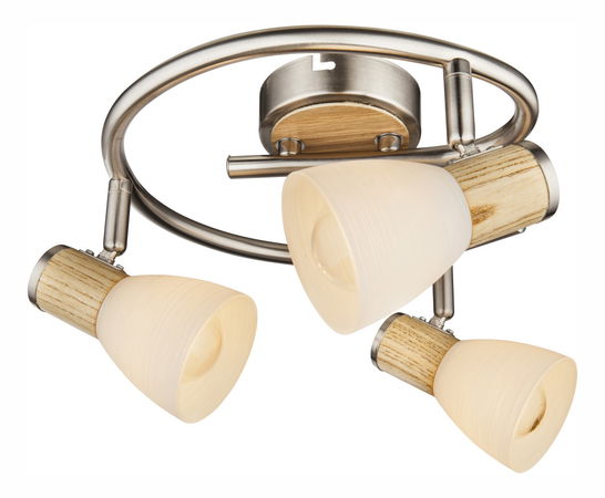 Stropné bodové svietidlo Gylfi 54352-3 v nikelovej matnej farbe s pruhovaným opálovým sklom a dreveným dizajnom. Má priemer Ø 250 a napájanie 230V s 3xE14 40W žiarovkami. Je vhodné na osvetlenie obývacej miestnosti, kuchyne alebo spálne. Tento moderný kúsok doplní váš interiér a dodá mu útulnú atmosféru.