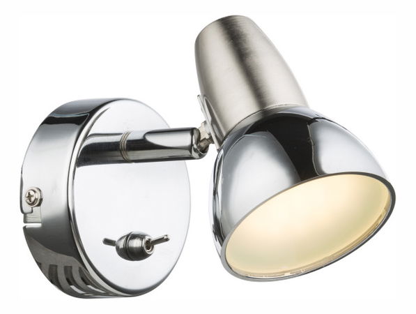 Nástenné svietidlo kov chróm nikel matný satinovaný plast priemer Ø 70 V: 95 H: 130 vrátane 1ks žiarovky LED 4W 126V 250lm 3000K.