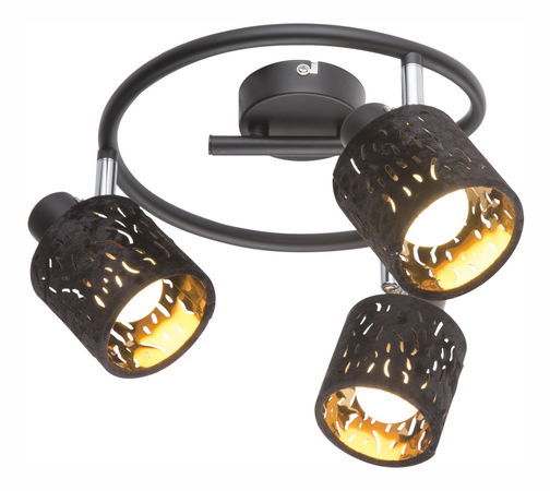 Bodové svietidlo Troy 54121-3 je výnimočné osvetlenie pre váš interiér. Toto svietidlo je dostupné v elegantnom chrómovom a čiernom zamatovom dizajne, s tienidlom s dekoratívnym dierovaním vo vnútri zlatého odtieňa. S priemerom 250 mm a výškou 150 mm, toto svietidlo obsahuje tri závitové žiarovky E14 s výkonom 8W a napätím 230V. Jeho moderný a luxusný vzhľad dokonale doplní váš domov a pridá mu útulnosť.
