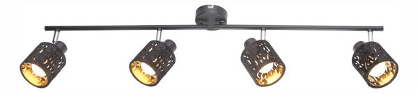 Bodové osvetlenie chróm, čierny zamat, nastaviteľné tienidlo s ozdobným dierovaním - vo vnútri zlaté, LXH: 840x160, bez 4xE14 8W 230V.