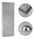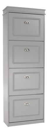 Botník Epery TYP 3 (sivá) je rustikálny nábytok s dizajnovými úchytkami. Jeho výška je 152 cm, šírka 53,5 cm a hĺbka 24 cm. Poskytuje dostatok úložného priestoru v podobe štyroch výklopných zásuviek s nosnosťou 90 kg, ktorý je vhodný pre 16 párov topánok. Materiál botníka je MDF/Drevotrieska a je dodávaný v demonte.
