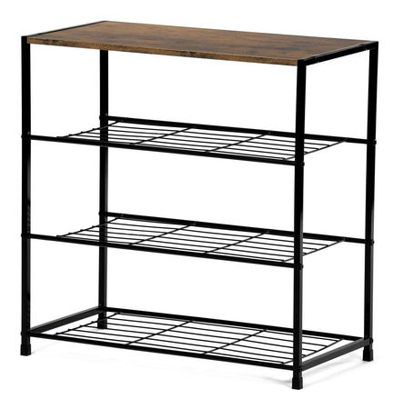 ZobraziťTento elegantný botník v hnedej farbe je ideálnym doplnkom do vašej predsiene. Kombinácia MDF dosky s dekorom duba Sonoma a kovových nôh v čiernej farbe vytvára štýlový a odolný kúsok, ktorý sa hodí do akéhokoľvek interiéru. Tri praktické police ponúkajú dostatok priestoru na usporiadanie vašej obuvi, zatiaľ čo horná doska môže slúžiť ako priestor na sedenie. Landhaus štýl dodá vášmu domovu útulný a príjemný vzhľad. Vyberte si tento botník a udržujte svoj domov organizovaný a štýlový.
