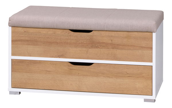 Botník Iweta KUF (white matte + golden oak) je vyrobený z kvalitného materiálu s ABS hranami pre väčšiu odolnosť. Má jedno výsuvné priečinok a jednu zásuvku pre ukladanie topánok. Nohy sú strieborné plastové a vrchná časť môže uniesť až 20 kg, zásuvka až 3 kg a celkové max. zaťaženie botníka je 25 kg. Rozmery sú 45 cm výška, 84,5 cm šírka a 41,5 cm hĺbka. Balík č.1 má rozmery 90x46x12 cm a váži 19,5 kg, balík č.2 má rozmery 90x47x7 cm a váži 5 kg.