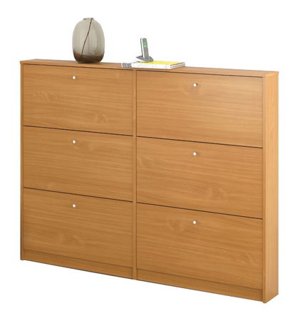 Pokiaľ máte v predsieni málo miesta a potrebujete zároveň uložiť viacej párov topánok, odporúčame vám tento plytký a široký typ botníka (17 cm). Vybavený je 6-timi dvierkami, dodáva sa v prevedení buk.