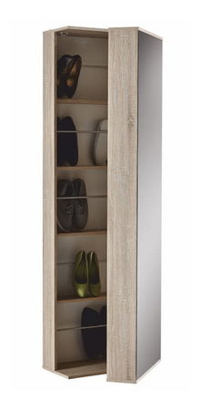 Praktický vysoký botník jednými dvierkami určený na uskladnenie približne 20 párov topánok. Na dvierkach sa vpredu nachádza zrkadlo.