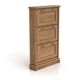 Krásna skrinka na topánky, ktorá bude skvostom vašich predsiení. Ozdobne vyrezávané lišty, hrany a fronty dvierok dodávajú skrinke vznešený štýl. Skrinka má troje dvierka, čiže budete mať dostatok priestoru pre vaše topánky. Dvierka majú aj ozdobné kované úchyty.
