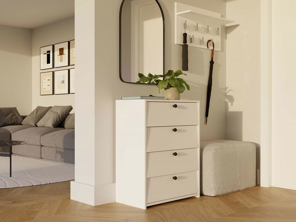 ZobraziťBotník Lentos 1 je moderný a funkčný kus nábytku, ktorý skvele zapadne do vášho predsiene, chodby alebo šatníka. S praktickým systémom štyroch samostatných dvierok s pohodlnými čiernymi úchytmi ponúka dostatok priestoru na uskladnenie rôznych typov obuvi, pričom zachováva poriadok a estetiku interiéru. Jeho minimalistický dizajn a univerzálna biela farba umožňujú jednoduché zlúčenie s rôznymi štýlmi zariadenia, či už ide o klasické alebo moderné prostredie. Tento voľne stojaci botník je ideálnym riešením pre efektívne využitie priestoru.