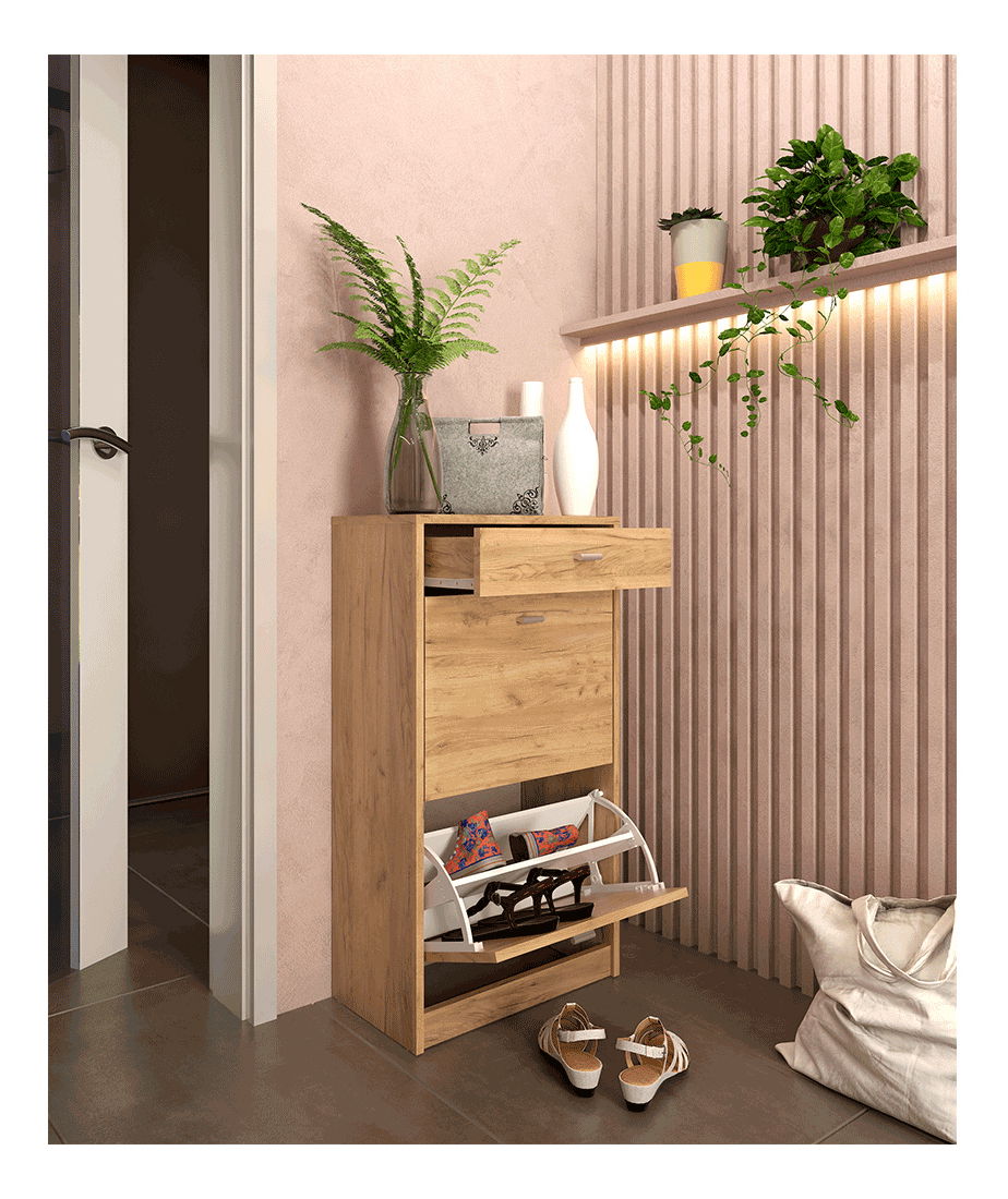 Botník VERITY je perfektný kúsok nábytku pre váš vchod. S výškou 98 cm, šírkou 50 cm a hĺbkou 28 cm, sa ľahko zmestí do každej predsiene. Vyrobený z kvalitnej drevotriesky DTD a laminovaný v prevedení artisan, botník VERITY je nielen pekný, ale aj veľmi funkčný. S jedným šuplíkom a dvojradovým dizajnom, botník poskytuje dostatok miesta na uloženie vašich topánok a denných vecí. Bez problémov doň môžete uschovať nielen veľké, ale aj malé topánky, čím si vytvoríte poriadok a priestor pri vstupe do vášho domova. S jednoduchým dizajnom, botník VERITY je kombináciou praktickosti a štýlu, ktorá určite oceníte.