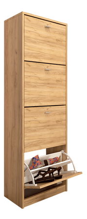 Botník VERITY TYP 3 je štvorradový botník vhodný na topánky. Výška 152 cm, šírka 50 cm, a hĺbka 28 cm. Biela farba krásne dopĺňa odtieň dreva dub sonoma. Je vyrobený z kvalitnej drevotriesky DTD laminovanej. Tento botník sa ľahko zapadne do každej predsiene. Vďaka výklopnému dizajnu je možné jednoducho uložiť veľké i malé topánky, čím sa uvoľní priestor pri vstupe do domácnosti. Jednoduchý dizajn skrýva v sebe praktickosť a funkčnosť.