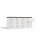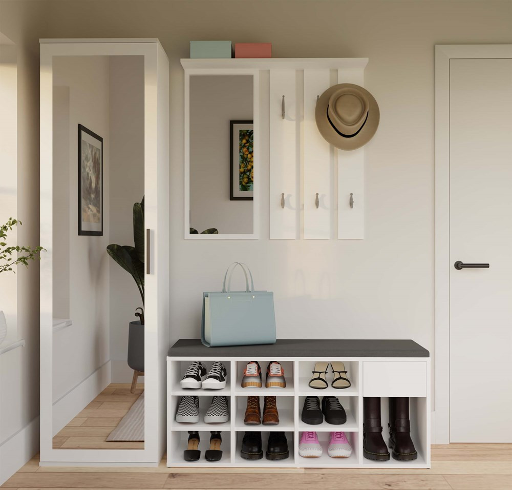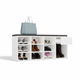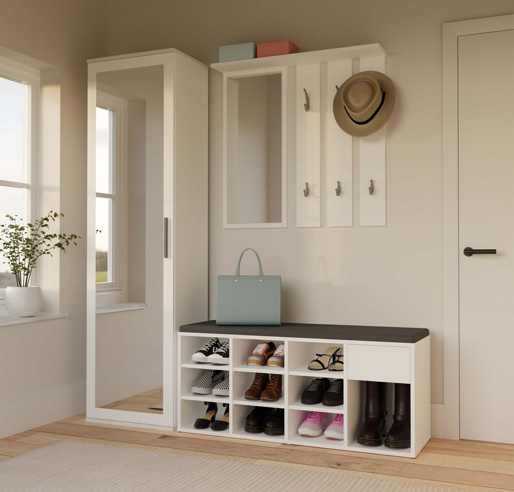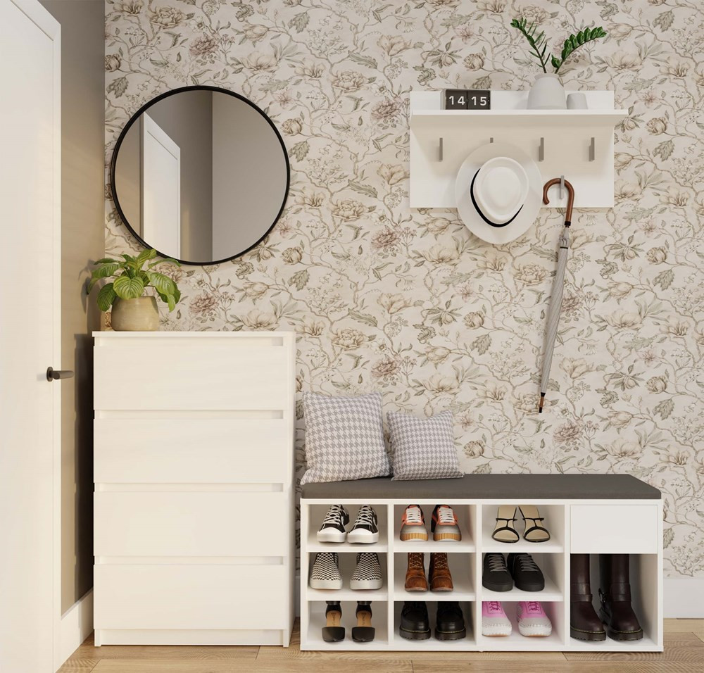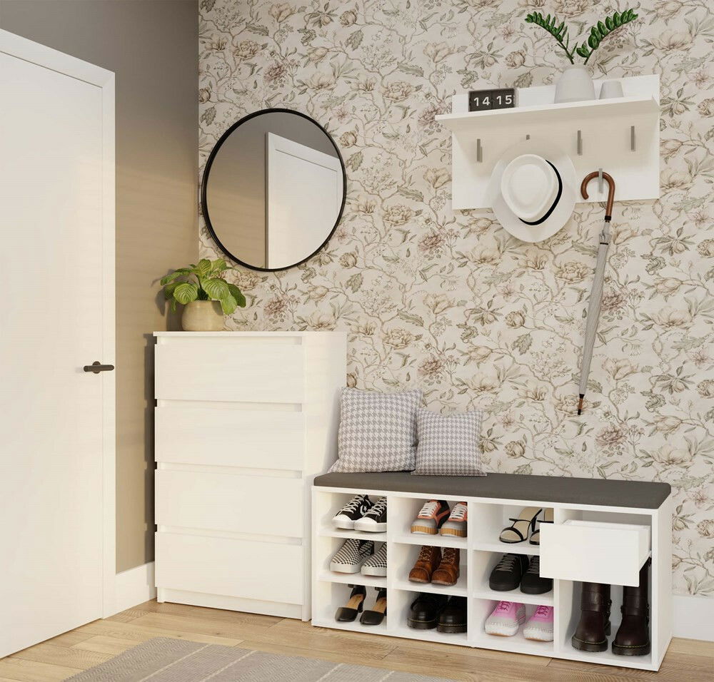 Botník Telos 1 je praktickým a estetickým riešením do každého predsiene, ktorý kombinuje pohodlie s dostatkom úložného priestoru. S bielou farbou a moderným dizajnom sa skvele hodí do rôznych interiérov. Tento nábytok ponúka až 9 otvorených priehradiek na obuv, praktickú zásuvku na drobnosti a vysokú komoru, ideálnu na uskladnenie vyšších topánok či doplnkov. Tapicerované sedenie zabezpečuje komfort pri obúvaní, zatiaľ čo stabilná konštrukcia z laminovanej dosky zaručuje dlhú životnosť. Telos 1 je ideálnym doplnkom pre organizáciu vašich topánok a príslušenstva.