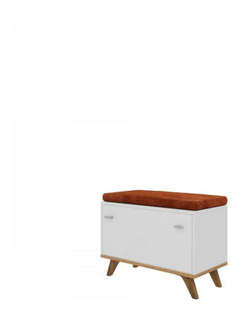 Botník Tunbergia TN04 je ideálnou voľbou pre tých, ktorí hľadajú pohodlie a štýl. Skrinka na topánky Tunbergia TN04 so sedadlom je veľmi praktická a ide o pekný kus nábytku do haly. Vďaka tomu získate sedadlo, ktoré vám uľahčí obúvanie a vyzúvanie obuvi každý deň. Sedadlo je vybavené pohodlným vankúšom. Spodná časť skrinky však ponúka priestor pre niekoľko párov obuvi. Skrinka sa otvára v štýle barovej skrinky, skrinku môžete otvoriť pomocou štýlových úchytiek. Na druhej strane je štruktúra botníka založená na vysokých nohách, ktoré sú vo farbe prírodného dreva, ktoré dokonale ladí s bielym telom. Rozmery skrinky sú 35 cm hlboké, 69 cm široké a 50 cm vysoké. Rozmery: šírka: 69 cm, výška: 50 cm, hĺbka: 35 cm Prevedenie: laminovaná doska s hrúbkou 16 mm, plastové nohy a rukoväte, obyčajné pánty, Hrany z PVC Záruka: 24 mesiacov
