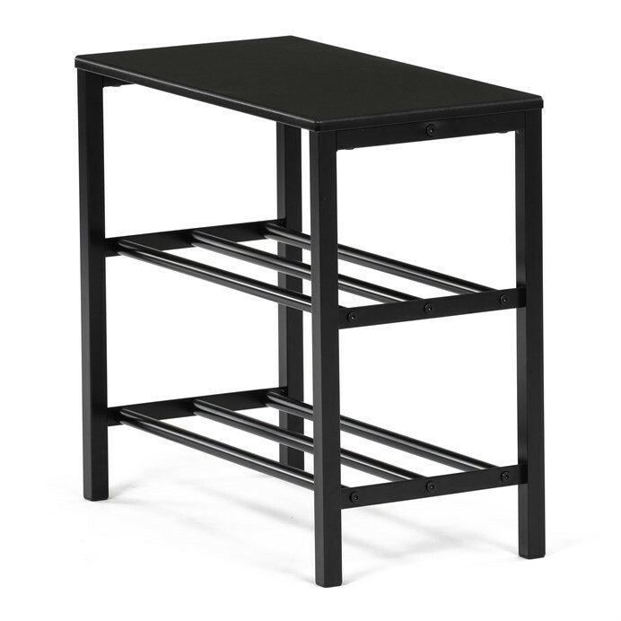 Štýlový a praktický botník je perfektnou voľbou pre každú modernú predsieň. Jeho elegantné čierne prevedenie s kovovou konštrukciou zaisťuje odolnosť a dlhú životnosť. Botník ponúka dve priestranné police, ktoré poskytujú dostatok miesta na uskladnenie obuvi, zatiaľ čo hornú dosku môžete využiť na dekorácie alebo drobnosti. Vďaka minimalistickému dizajnu sa ľahko začlení do akéhokoľvek interiéru. Tento botník kombinuje funkčnosť s jednoduchým a čistým vzhľadom, ktorý vám pomôže udržať predsieň vždy upratanú.