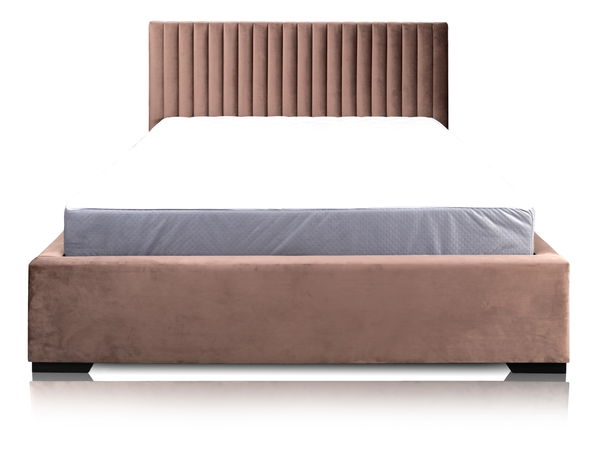 Čalúnená posteľ Veggie s rozmerom 160x200 cm je kvalitná a nadčasová posteľ s pevným rámom a kovovou konštrukciou. Posteľ má úložný priestor a opierka hlavy je vyplnená nadýchanou netkanou textíliou, ktorá je potiahnutá zamatovou látkou. Boky a čelo postele sú tiež vyrobené z tejto látky. Nohy sú drevené s rozmermi 18x4 cm a rošt je lamelový v drevenom ráme. Výška od zeme po rošt je 40 cm a hrúbka rámu je 8 cm. Táto posteľ v hnedom odtieni ponúka pohodlný spánok a zároveň aj štýlový dizajn pre každú spálnu.