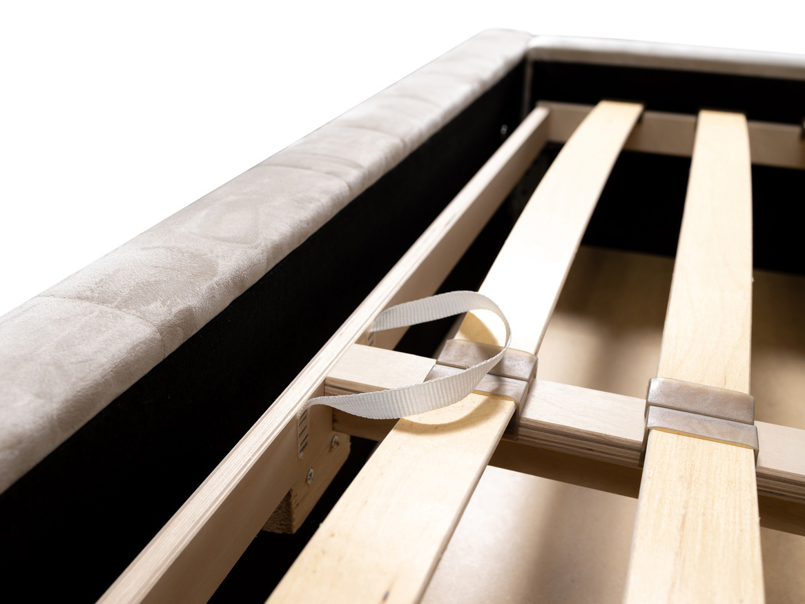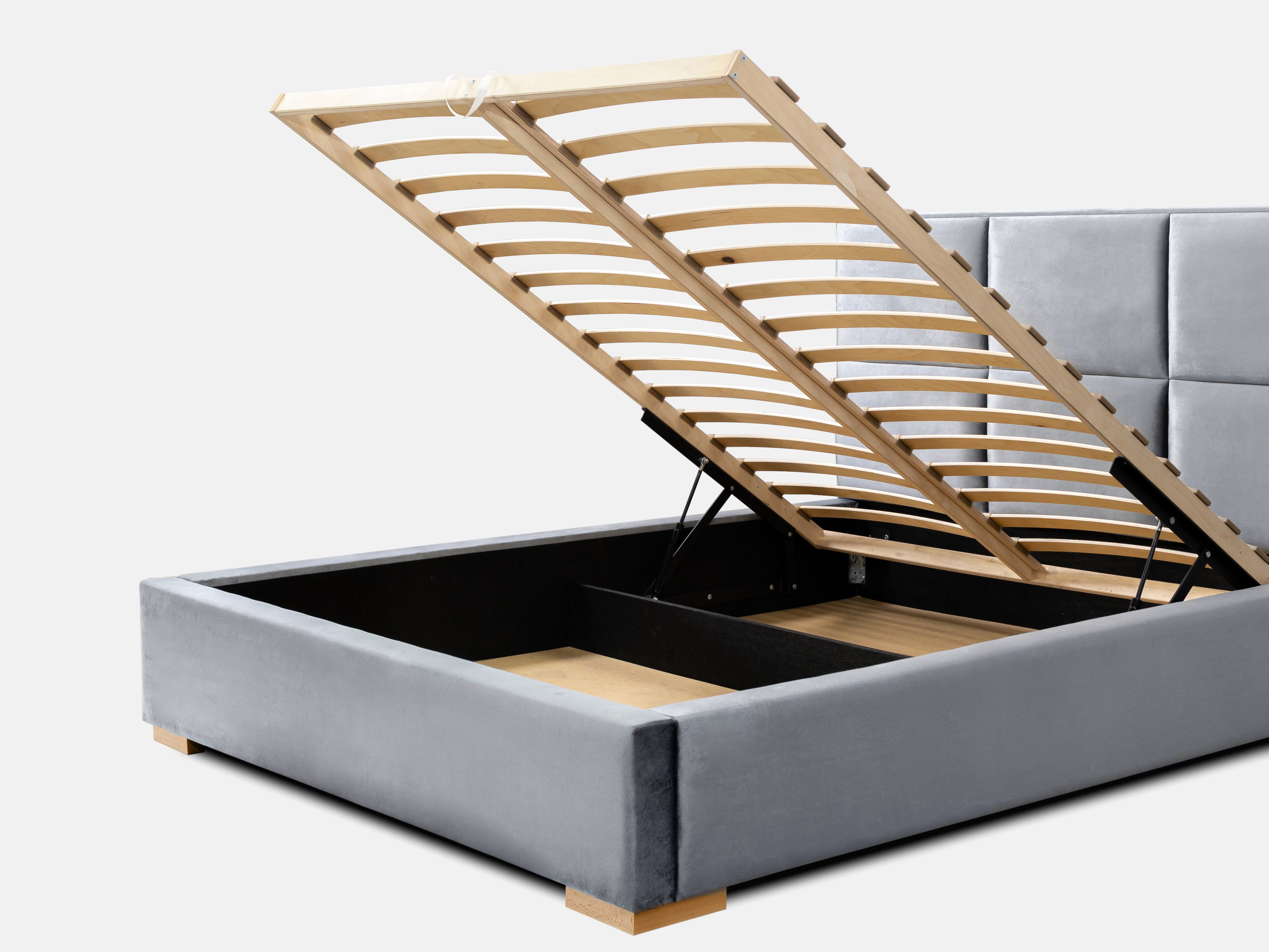 Čalúnená posteľ Veggie je moderný a pohodlný nábytkový kúsok v elegantnej sivej farbe. S veľkosťou 180x200 cm a praktickým úložným priestorom je ideálna pre menšie byty. Vyrobili ju z kvalitného materiálu, ktorý odoláva bežnému opotrebeniu. Posteľ je dodávaná s roštom, ktorý zabezpečí správnu podporu pre váš matrac. Jej nohy sú drevené a rozmery nožičiek sú 18x4 cm. Výška od zeme po rošt je 40 cm a hrúbka rámu je 8 cm.
