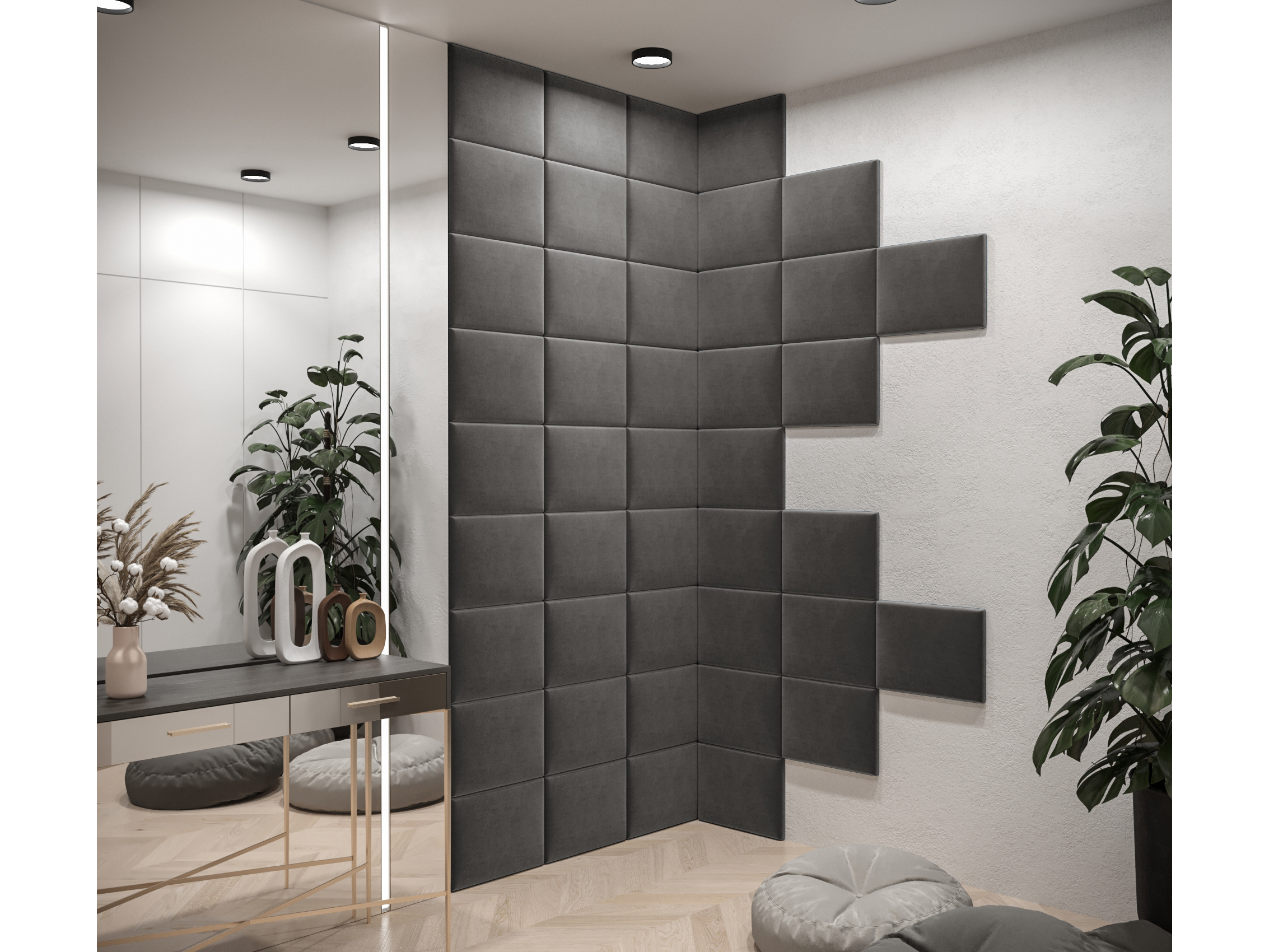 Čalúnený panel na stenu v tvare štvorca Cubic s hladkým a zamatovým povrchom dodá vášmu bývaniu šmrnc. Použiť ho môžete ako čelo postele pri čítaní knihy alebo sledovaní televízie alebo do predsiene k šatníkovej skrini. Steny nielen skrášli, ale aj zabráni ich ušpineniu a poškodeniu. Okrem toho čalúnený panel absorbuje zvuky a udržuje teplo. Vyskladajte si vlastnú čalúnenú stenu a vneste do svojho domova kus originality. Mäkké panely sú dostupné v mnohých farebných variáciách, či už ide o plyšový povrch alebo ekokožu. Inštalácia stenových panelov je veľmi jednoduchá. Na upevnenie panelov je potrebné montážne lepidlo.