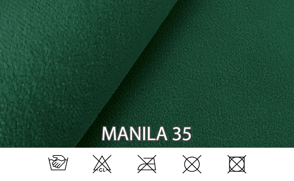 Manila je látka so štruktúrou, ktorá je jemná a zamatová na dotyk. Patrí do skupiny plyšových látok, ktoré skvele vyzerajú na čalúnenom nábytku. Je trvácna, odolná voči treniu a oderu. Počas používania nevybledne a nežmolkuje sa. Má nehorľavé vlastnosti. Tkaninu je možné prať ručne pri nízkych teplotách. Zloženie: 100% polyester. Gramáž: 220g/m² +/- 5%.