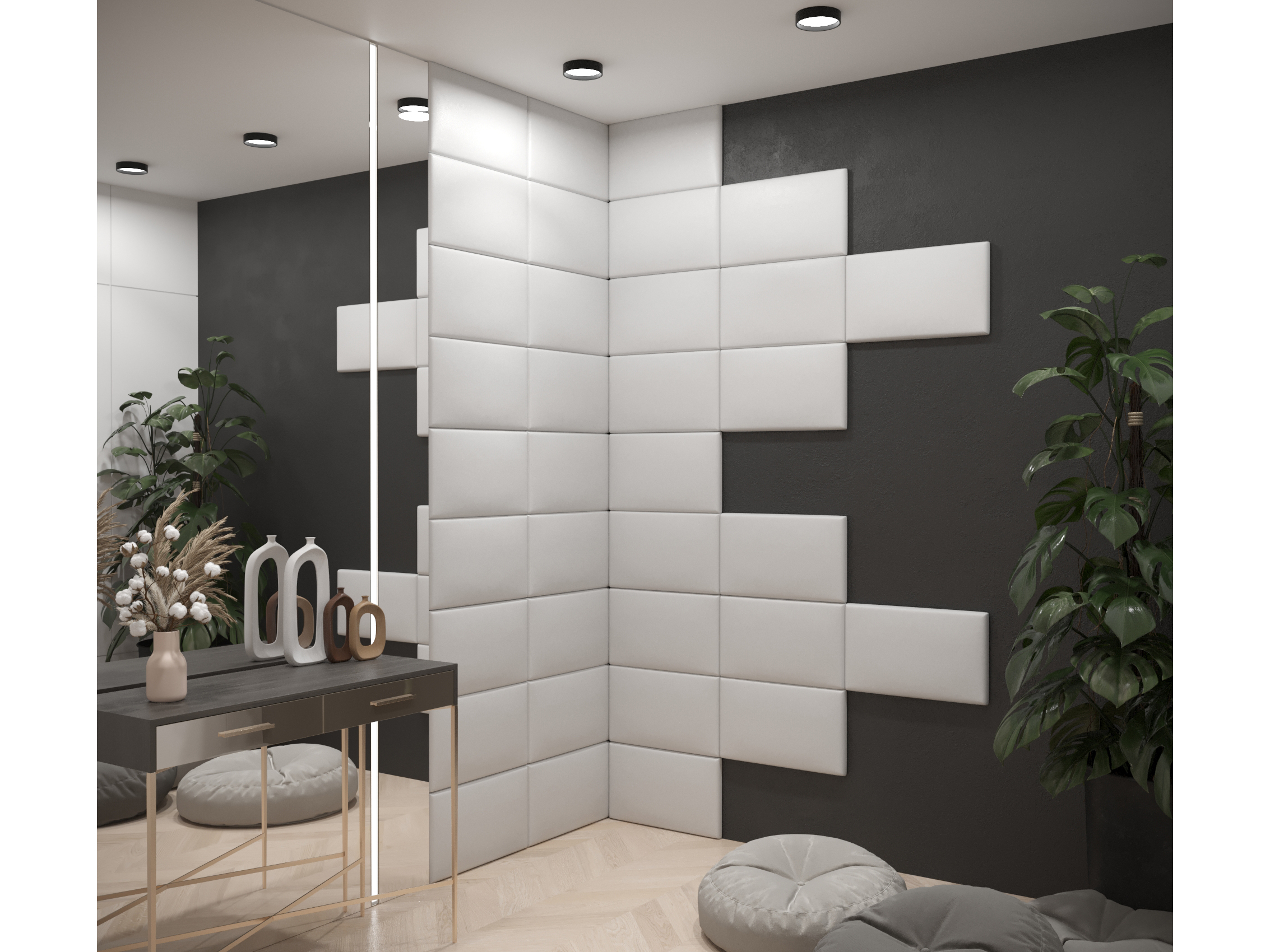 Čalúnený panel na stenu v tvare štvorca Cubic s hladkým povrchom z ekokože dodá vášmu bývaniu šmrnc. Použiť ho môžete ako čelo postele pri čítaní knihy alebo sledovaní televízie alebo do predsiene k šatníkovej skrini. Steny nielen skrášli, ale aj zabráni ich ušpineniu a poškodeniu. Okrem toho čalúnený panel absorbuje zvuky a udržuje teplo. Vyskladajte si vlastnú čalúnenú stenu a vneste do svojho domova kus originality. Mäkké panely sú dostupné v mnohých farebných variáciách, či už ide o plyšový povrch alebo ekokožu. Inštalácia stenových panelov je veľmi jednoduchá. Na upevnenie panelov je potrebné montážne lepidlo.