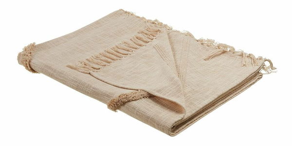 Ak hľadáte niečo, čo rozžiari váš obývací priestor, táto béžová prikrývka bude skvelou voľbou. Vďaka výraznému geometrickému vzoru a ozdobným strapcom dokonale zapadne do interiérov v štýle boho, ale aj tých v rustikálnom štýle. Tento bavlnený doplnok môže poslúžiť ako očarujúca dekorácia alebo ako praktická prikrývka do spálne, obývačky či záhrady.