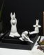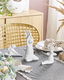 Táto sada 3 figúrok v tvare veľkonočných zajačikov je rozmarná a hravá a je dokonalým doplnkom akéhokoľvek prostredia s veľkonočnou tematikou. Je ručne vyrobená z vysokokvalitnej keramiky a pýši sa klasickým bielym povrchom, ktorý vytvára minimalistický vzhľad. Umiestnite tieto očarujúce dekorácie na knižnicu, jedálenský stôl alebo policu a užite si sviatočnú atmosféru.