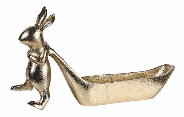 Táto očarujúca dekorácia sa stane ozdobou veľkonočného prestierania. Je ručne vyrobená z odolného hliníka a možno ju použiť ako dekoráciu alebo odkladací priestor na šperky. Nevyžaduje si každodennú údržbu a veľmi ľahko sa čistí. Vďaka dizajnu so zajacom ju využijete nielen počas Veľkej noci, ale aj počas roka.