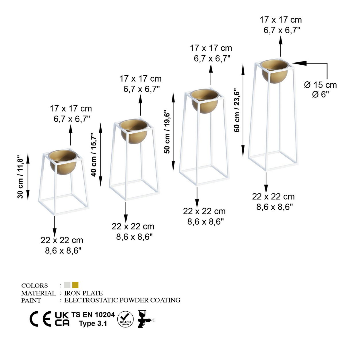 Dekoratívny stojan na kvety Gwion (biela + zlatá)