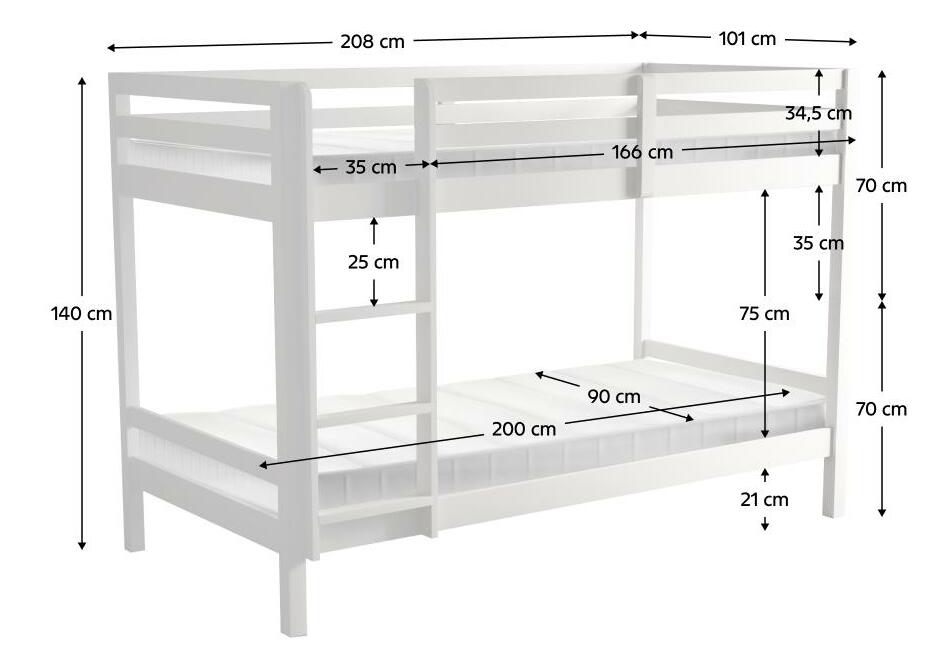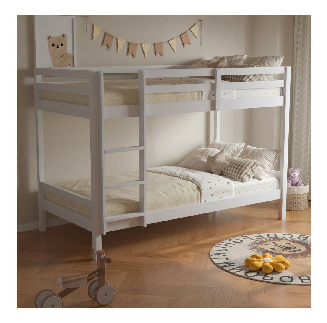 Detská poschodová posteľ 90 cm Invocato (biela) (s roštom)