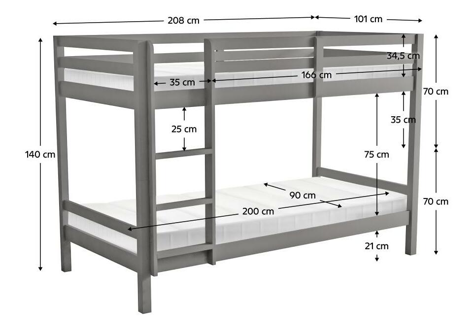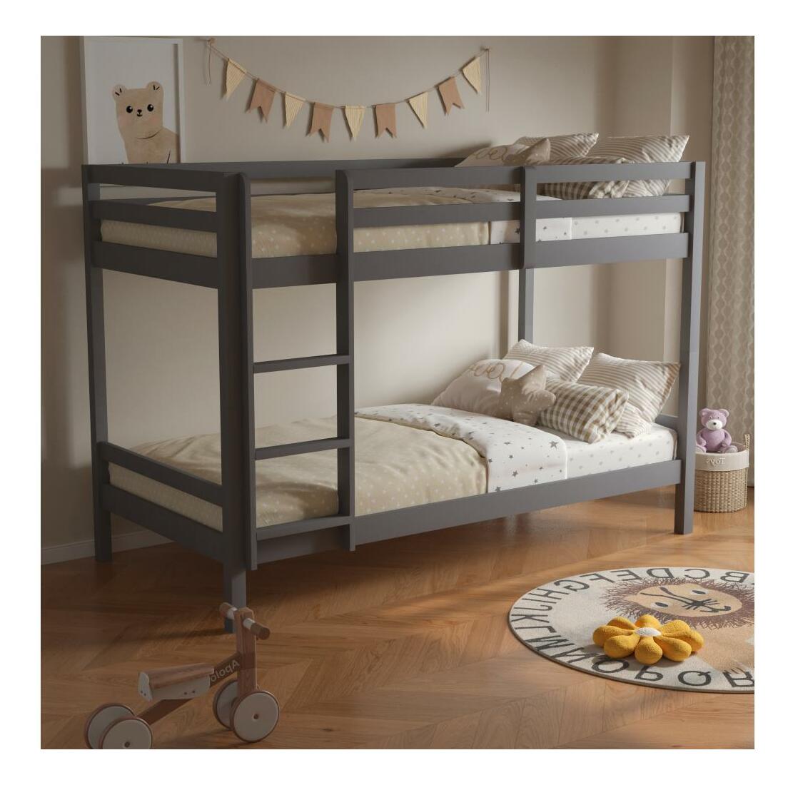 Detská poschodová posteľ 90 cm Invocato (sivá) (s roštom)