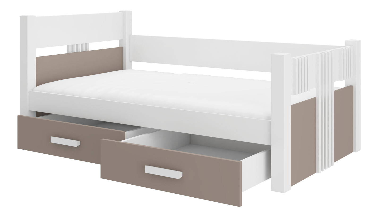 Detská posteľ Buppi s rozmermi 180x80 cm je ideálnym miestom pre vaše deti na nekonečný a bezpečný spánok. S výškou 80 cm, šírkou 93 cm a hĺbkou 194 cm je dostatočne veľká pre maximálny komfort. Je vyrobená z laminovanej dosky a PVC okrajov, čo zaručuje jej trvanlivosť a odolnosť. Nosnosť až do 110 kg zabezpečuje jej bezpečnosť a pevnosť. Táto posteľ je elegantná kombinácia bielej a hnedej farby, čo dodáva miestnosti štýlový vzhľad. Vaše deti budú milovať svoje nové miesto snov a pohody.