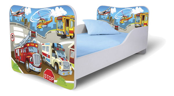 Detská posteľ je vyrobená z bezpečných a kvalitných materiálov, ktoré sú netoxické a bez zápachu. Odolná HDF doska je vybavená plastovými ABS lištami na miestach, ktoré sú náchylnejšie na poškodenie. Obrázok je chránený vrstvou priehľadného lamina, takže sa nepoškodí ani nepoškriabe. V záujme bezpečnosti dieťaťa sú aj vyvýšené bočnice, ktoré zabránia spadnutiu z postele počas spánku. Posteľ s detským motívom si vaše ratolesti zamilujú a navyše aj oživý každú detskú izbu. Súčasťou balenia je rošt a penový matrac s rozmermi 180 x 80 cm.