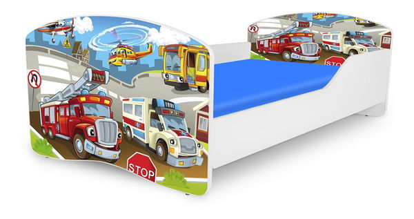 Detská posteľ Lori sa stane stredobodom detskej izby. Je vyrobená z bezpečných a kvalitných materiálov, ktoré sú netoxické a bez zápachu. Základom je odolná HDF doska potiahnutá laminom a navyše má aj plastové ABS lišty na miestach, ktoré sú náchylnejšie na poškodenie. Pestrofarebný obrázok je chránený vrstvou priehľadného lamina, takže sa nepoškodí ani nepoškriabe. Vyvýšené bočnice zvyšujú bezpečnosť detí, pretože vďaka nim počas spánku nespadnú z postele. Súčasťou balenia je rošt a penový matrac s rozmermi 180 x 80 cm. Za príplatok je možné objednať aj úložný priestor pod posteľ.