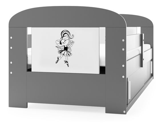 Detská posteľ 80 cm Fimmo (grafit + baletka) (s roštom, matracom a úl. priestorom)