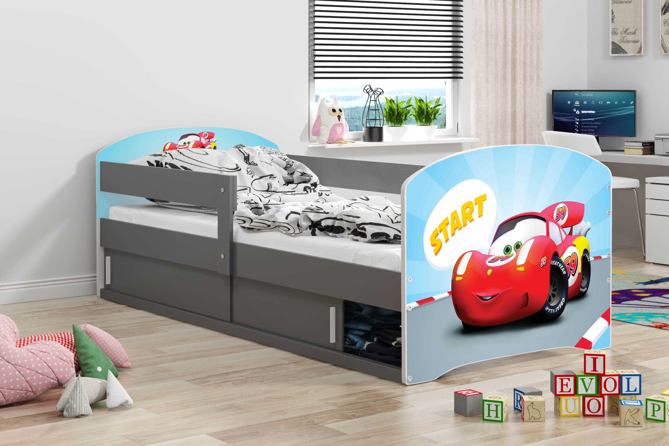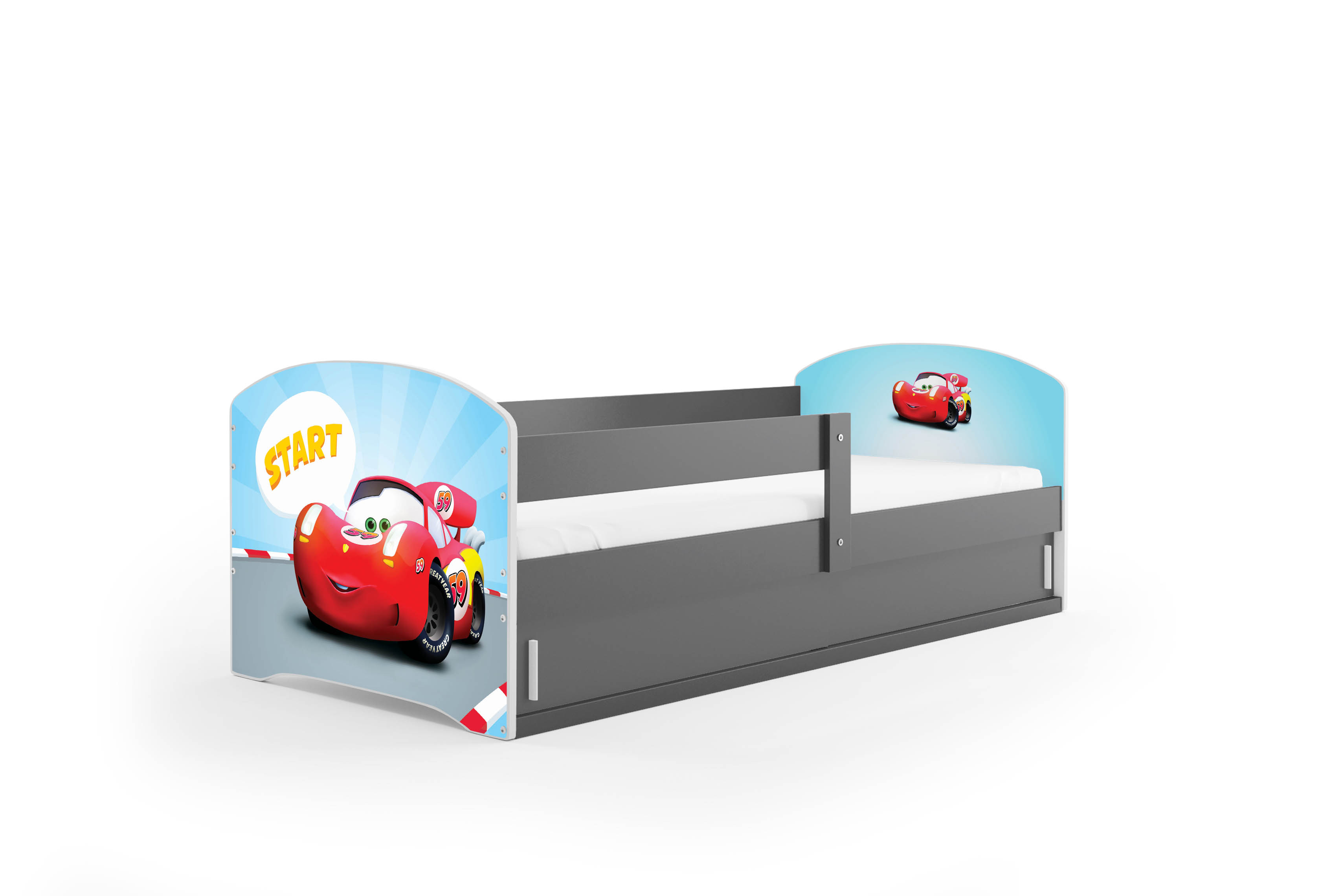 Detská posteľ 80 x 160 cm Lukan (grafit + vzor cars) (s roštom, matracom a úl. priestorom)